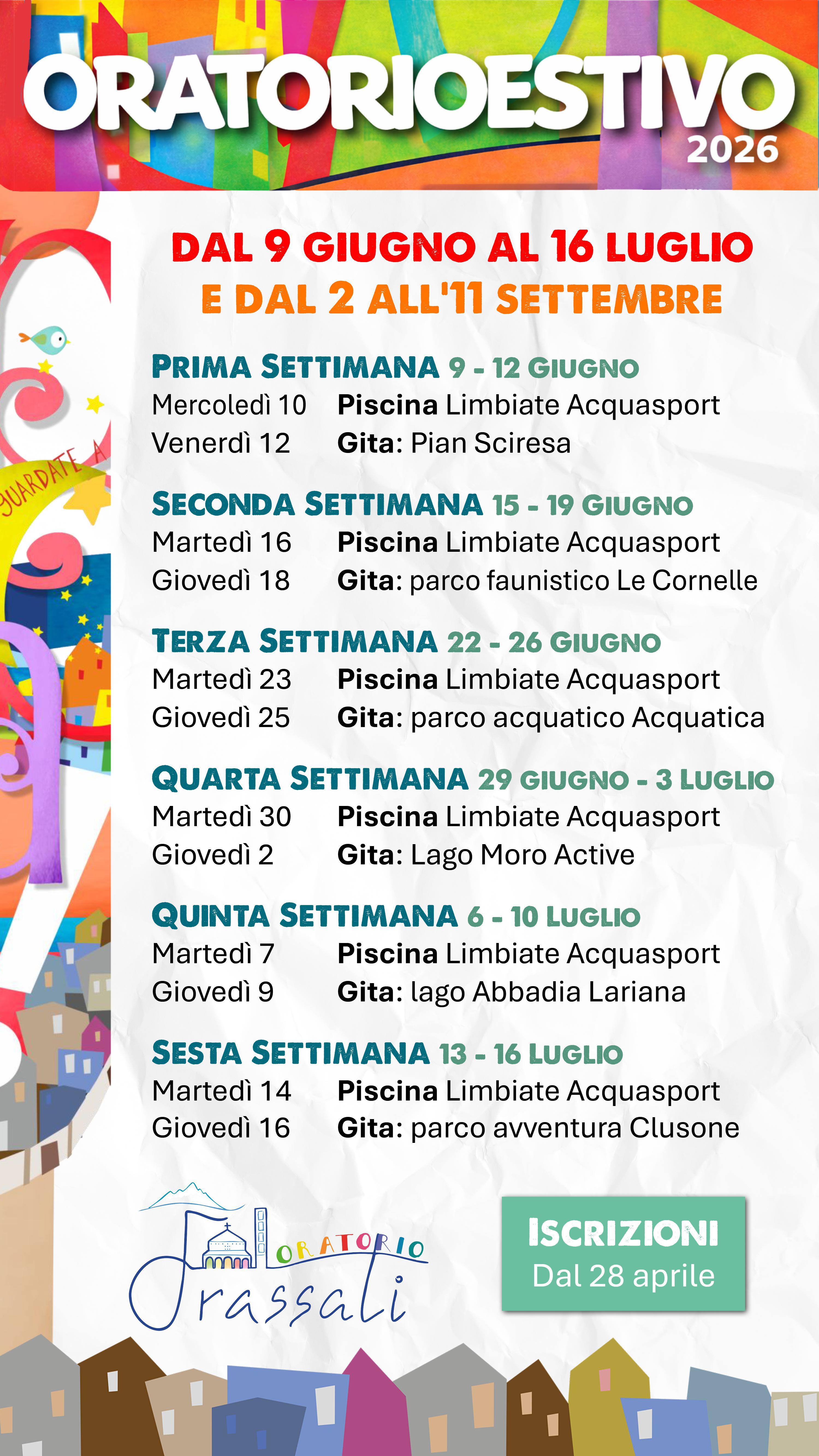 Oratorio Estivo 2026 - Calendario