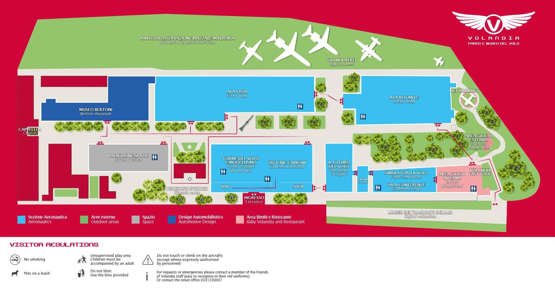 Volandia è "Parco e Museo", con numerosi spazi – all’aperto ed al coperto – dedicati ai più piccoli e a tutti i bambini che sono in noi: simulatori di volo, planetario, modellini, sezione Ogliari, biblioteca, filmati..